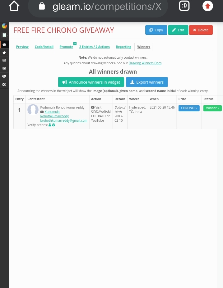 So, we conducted a giveaway contest on June 20th.